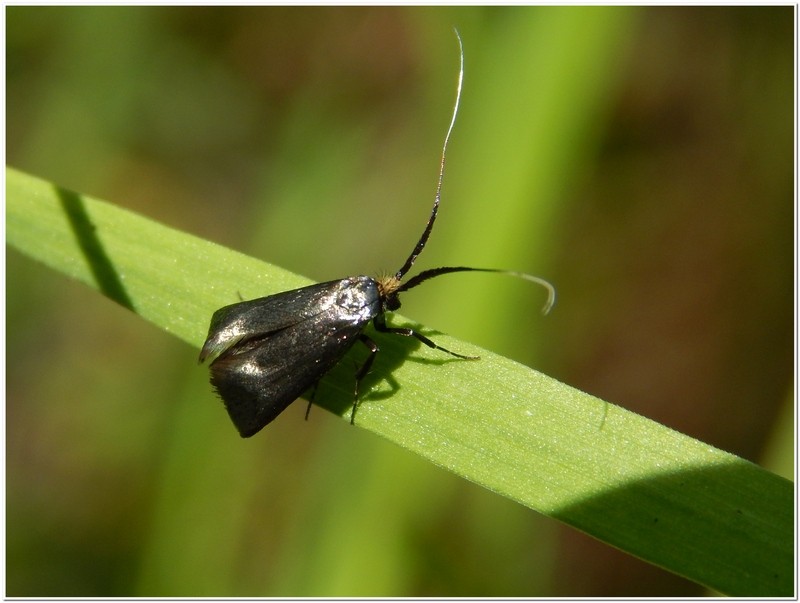 Ciao, immagino che fino alle Adelidae ci eri arrivato, le antenne mi fanno pensare ad una femmina di Nemophora, ance se parecchio in anticipo mi fanno pensare, con benficio d'inventario a Nemophora cupriacella (Hübner, [1819]) su lepiforum.org c'è un esemplare quasi nero, forse la luce è stata riflessa male nella tua foto , cmq ti lascio il Link