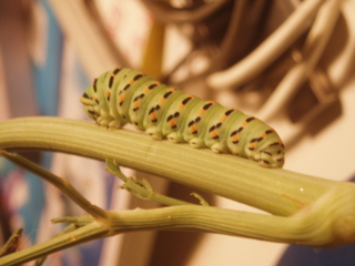 42,54 KB Bruco tipo "stecco" (identificatemelo perfavore) che cmq crescevano e mangiavano in armonia con i machaoni...ma da quando l'ho visto crescere questi bruchini sono praticamente scomparsi (solo una pupa penzolante a forma di goccia di mezzo cm è rimasta)che se li sia pappati e sia cresciuto cosi tanto??