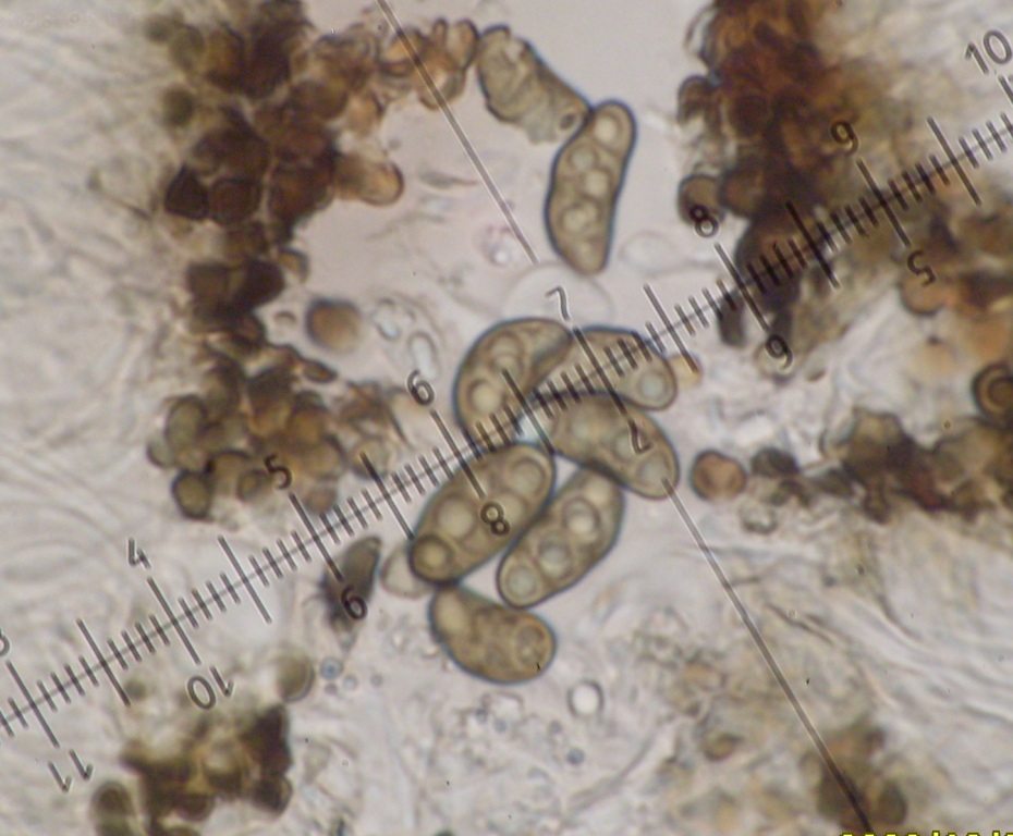 Christian - guardando il lichene "dall'alto" - pensava a Scoliciosporum chlorococcum. Ma le spore non quadrano: quelle di Scoliciosporum sono trasparenti, queste sono colorate. Christian - volente o nolente - armati con un microscopio! ...altrimenti non c'è verso di identificare tanti licheni crostosi. ciao a tutti di corsa PL |