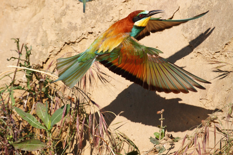 che spettacolo, quelle ali hanno tutte le sfumature dell'arcobaleno! complimenti per aver immortalato questo elegante momento!