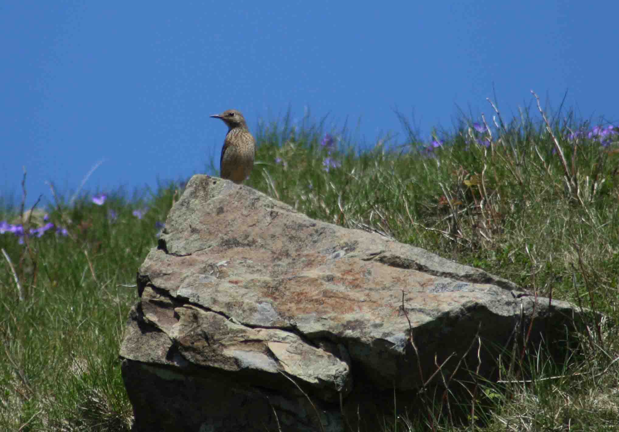 femmina o giovane di Codirossone, la foto ci fa vedere perfettamente il suo habitat elettivo, le praterie d'altitudine con presenza di affioramenti di roccia