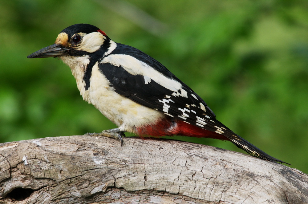 Stai tranquillo Marco, i colori sono quelli del Picchio rosso maggiore e lo sporco che vedi intorno al becco è dovuto di sicuro al fatto che in questo periodo hanno i piccoli da nutrire, quindi è facile che si sporchino. Per il motivo della sua momentanea tranquillità, di certo ha il nido nei paraggi dove l'hai fotografato e ..... un po' di pausa per riprendere fiato serve anche a loro. Buone osservazioni.