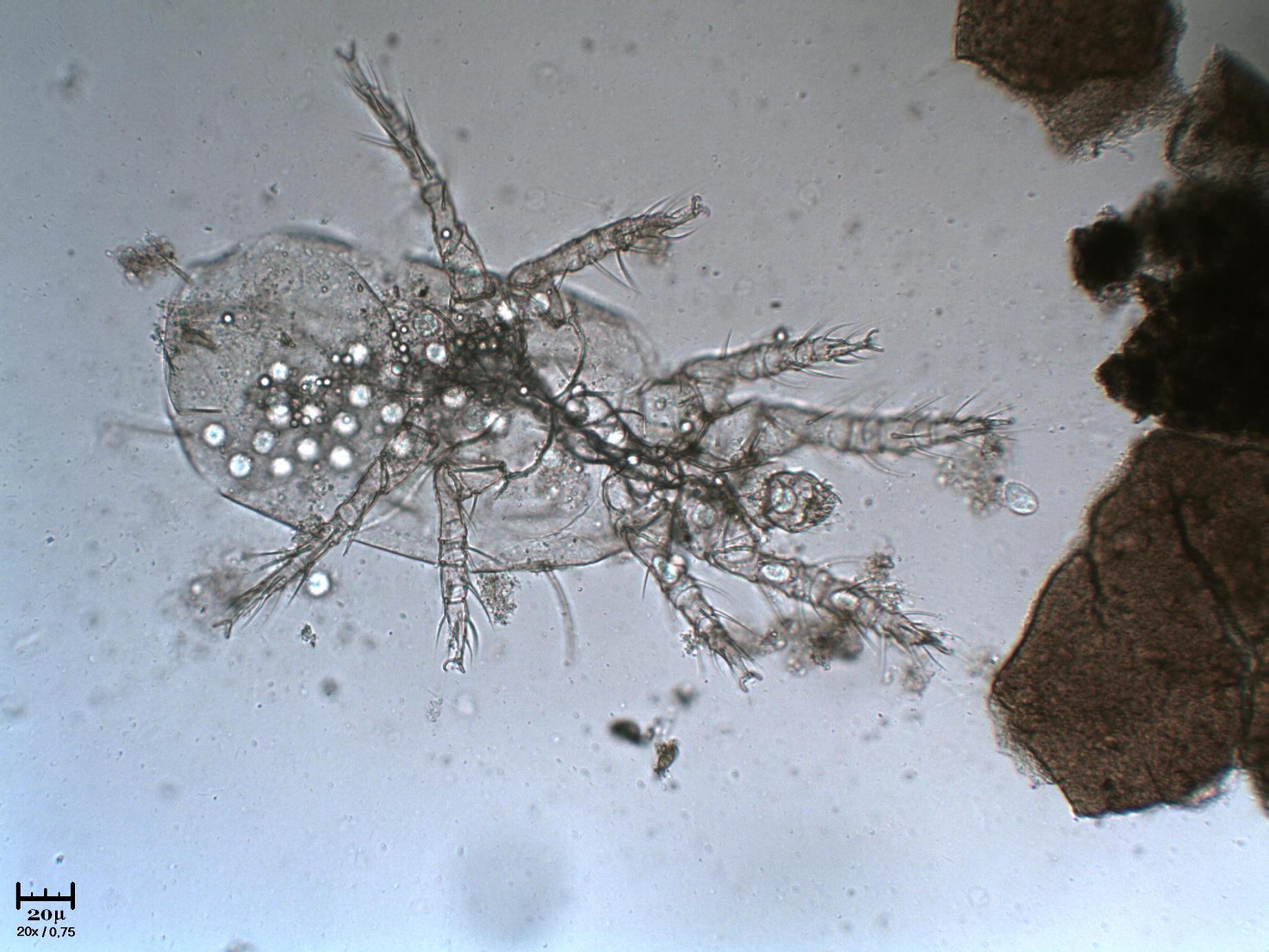 Sì, è un acaro, ma non so dirti molto altro, perchè gli acari sono proprio tantissimi e di acquatici ce ne sono diversi (ammesso che non sia un acaro terrestre finito in acqua). Da un po' mi riprometto di saperne di più, ma non è facile ...