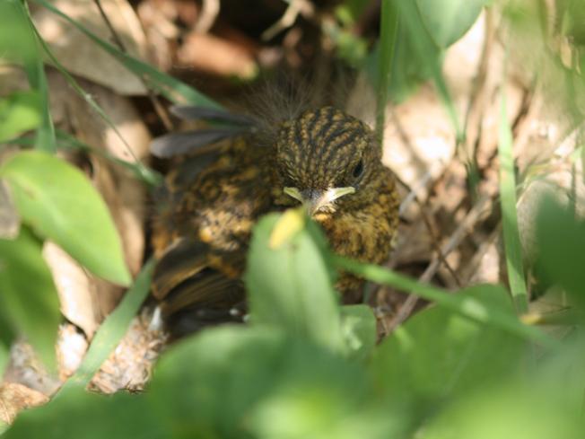 Fotografato oggi pomeriggio in un bosco misto vicino Viterbo, si nascondeva tra il fogliame e quasi lo calpestavo. Poi, cosa che mi ha un pò sorpreso, è corso via molto goffamente, senza svolazzare come fanno di solito i nidiacei appena usciti dal nido, tornando a nascondersi nel sottobosco. Chi è?