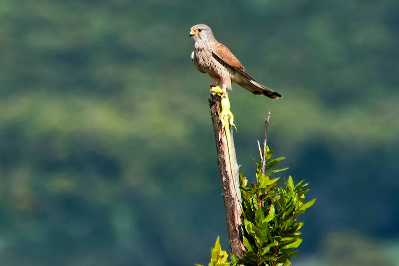 ma quanto è lunga la coda del ramarro?! comunque si tratta di un maschio di Gheppio...rapace comune, ma sempre bello ah, sì dopo c'è la femmina...