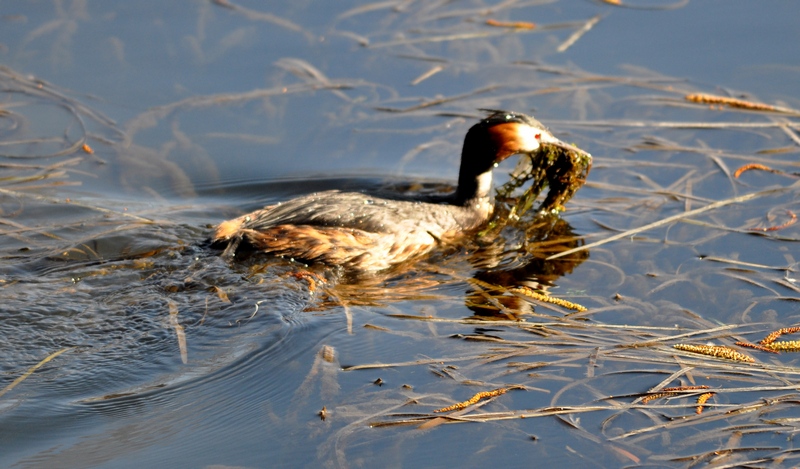 Credo stiano costruendo il nido, ma non so se può essere vero perchè non li ho mai visti prima fare così.Uno dei due, credo la femmina, non si muoveva fino a che non tornava l'altro con il becco carico e depositava le alghe sul mucchio.
