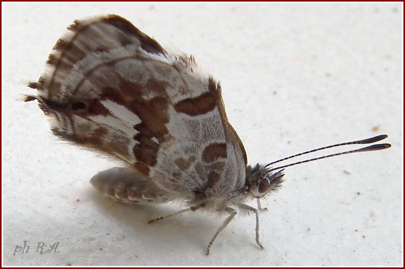 oggi una piccola farfalla(aveva le ali delle dimensioni di un unghia del mignolo)spiccava sul bianco pavimento del mio balcone....non ho resistito e l'ho fotografato, ma non ne capisco niente di insetti. Chi mi può aiutare?