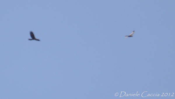 Dove sono state scattate le foto? Comunque la sagoma più chiara mi sembrerebbe un'Albanella... sull'altro ho qualche dubbio. Ciao, Giulia |