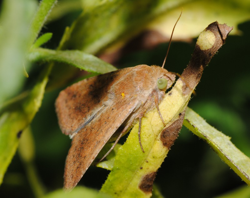 Foto scattata a Civitavecchia, lo scorso 20 ottobre. Praticamente in riva al mare; volava (e si nutriva) su un cespuglio con dei fiori insieme a una decina di Autographa gamma. Gli occhi verdi e il fatto che volasse di giorno potrebbero far pensare a Heliothis peltigera ...ma il pattern non coincide con le foto trovate sul web....D'altra parte non conosco nemmeno la variabilità della specie...
