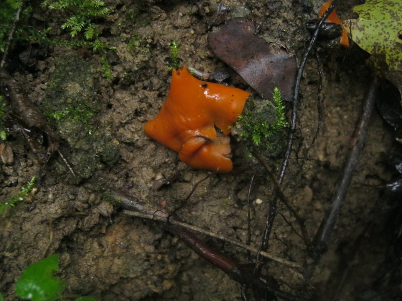 sempre ammesso che lo sia, ai bordi del grande ammasso del precedente ascomicete c'erano pochi esemplari di quest'altro, per lo più con forma a coppetta come l'altro, questo forse essendo più maturo ha assunto un'altra forma o forse è proprio altra cosa.