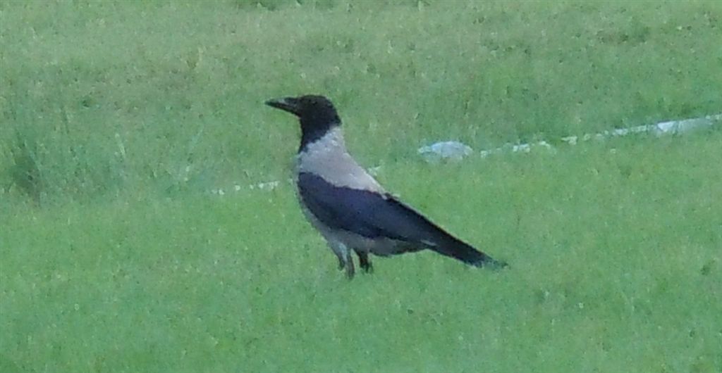 | Non saprei, secondo me è la seconda foto che è venuta troppo chiara e sembra che la cornacchia abbia il corpo bianco anziché grigio...di che colore ti è sembrata dal vivo? |
