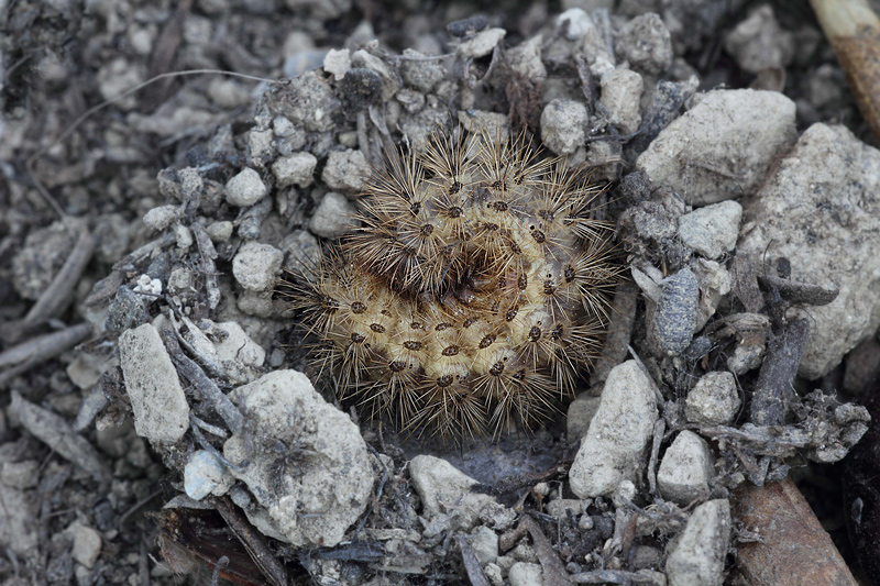 Ho trovato alcuni di questi bruchi ai primi di giugno mentre sradicavo l'avena selvatica, erano raggomitolati alla base di queste piante.