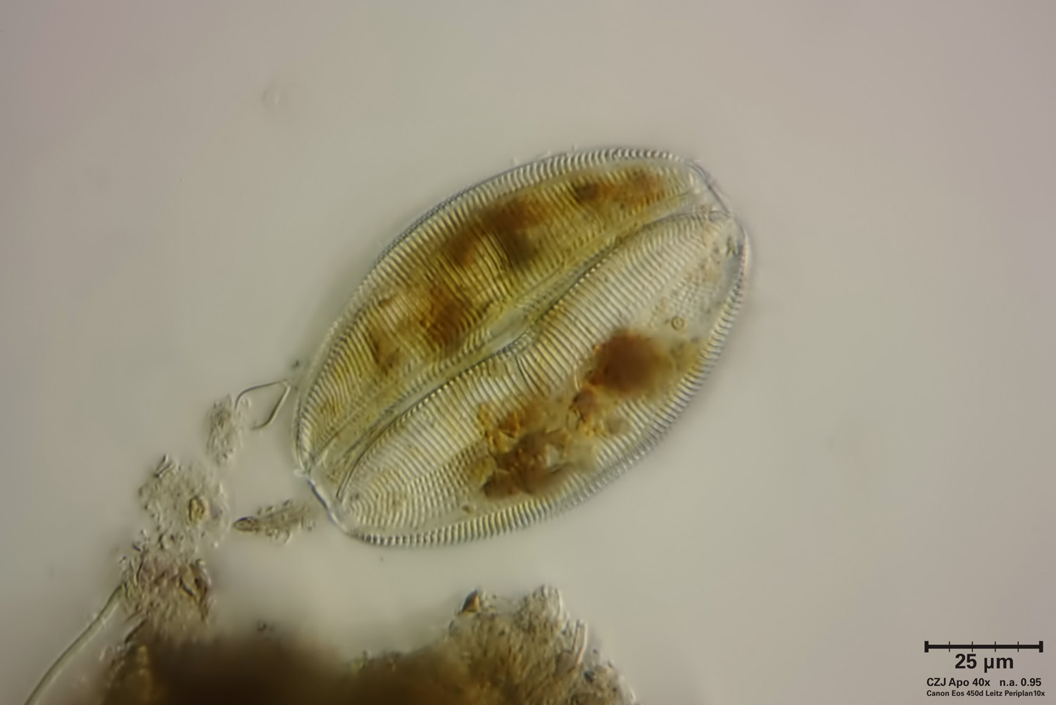 Bella immagine! Anche a me pare Amphora , fra l'altro nella parte inferiore si vede una zona centrale che pare priva di costolature che farebbe pensare a var. lybica,anche se dovrebbe essere replicata anche superiormente...Mi resta un piccolo dubbio si possa trattare di una qualche specie di Diploneis...ma mi convince di più Amphora.
