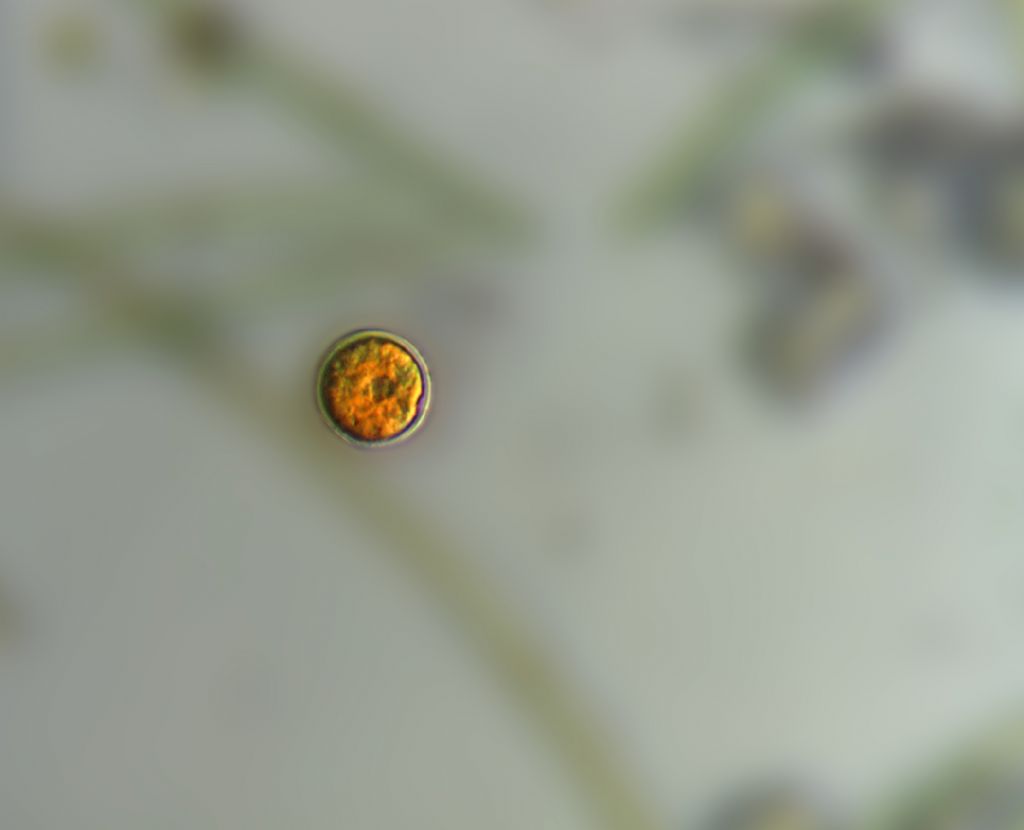 27,46 KB Haematococcus pluvialis,non saprei se si tratta di una fase degenerativa o stia sintetizzando il pigmento rosso
