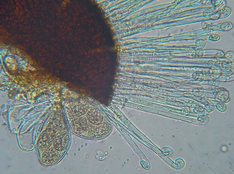 Tra l'altro una struttura come il Peritecio esiste anche nei Pirenomiceti. E gli Aschi? a 400x sono ben visibili, contenuti nel Peritecio stesso in numero variabile da 1 a più di 20 e contenenti 4-8 Ascospore: