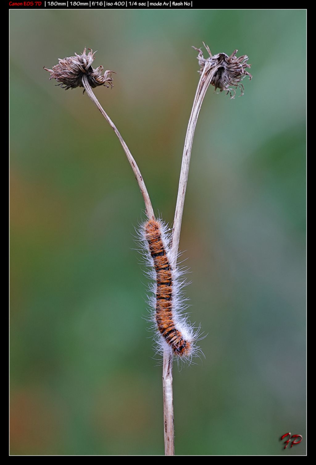 Scatto realizzato questa mattina, 8:30 circa, a San Martino delle Scale a Palermo. Temperatura 7,5 gradi. Mi piacerebbe sapere il nome del bruco e il nome della farfalla/falena che rinascerà.