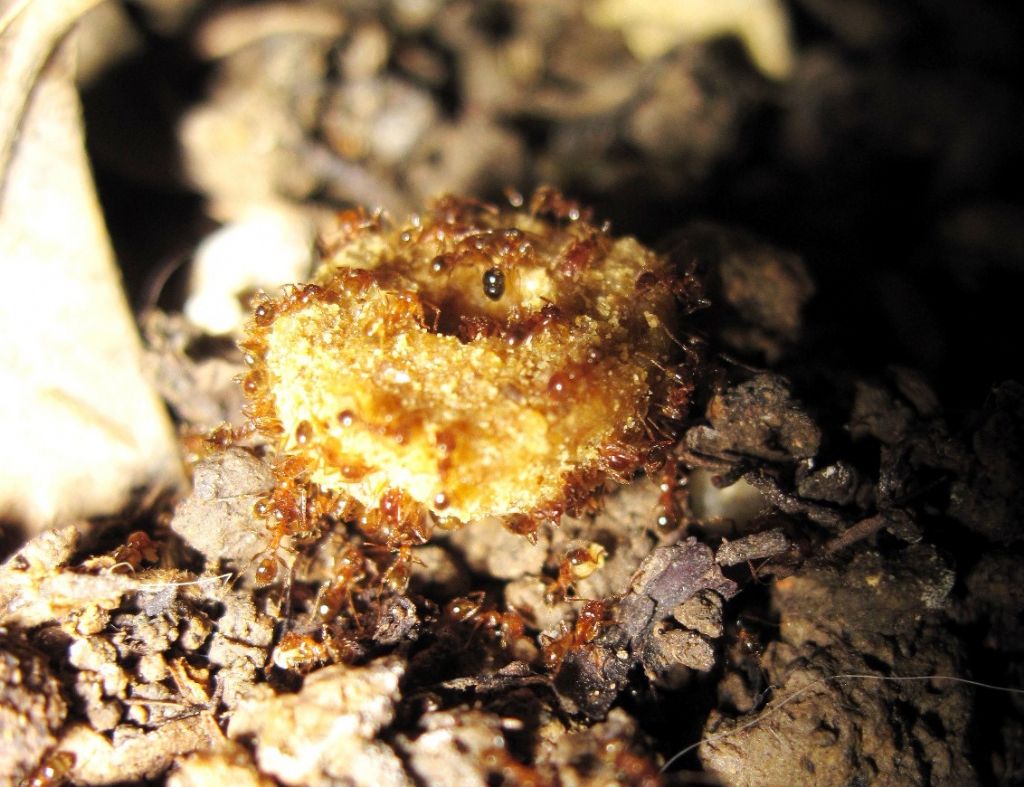 Ciao , le formiche sono Pheidole pallidula e l'anello credo sia una crocchetta per cani o gatti