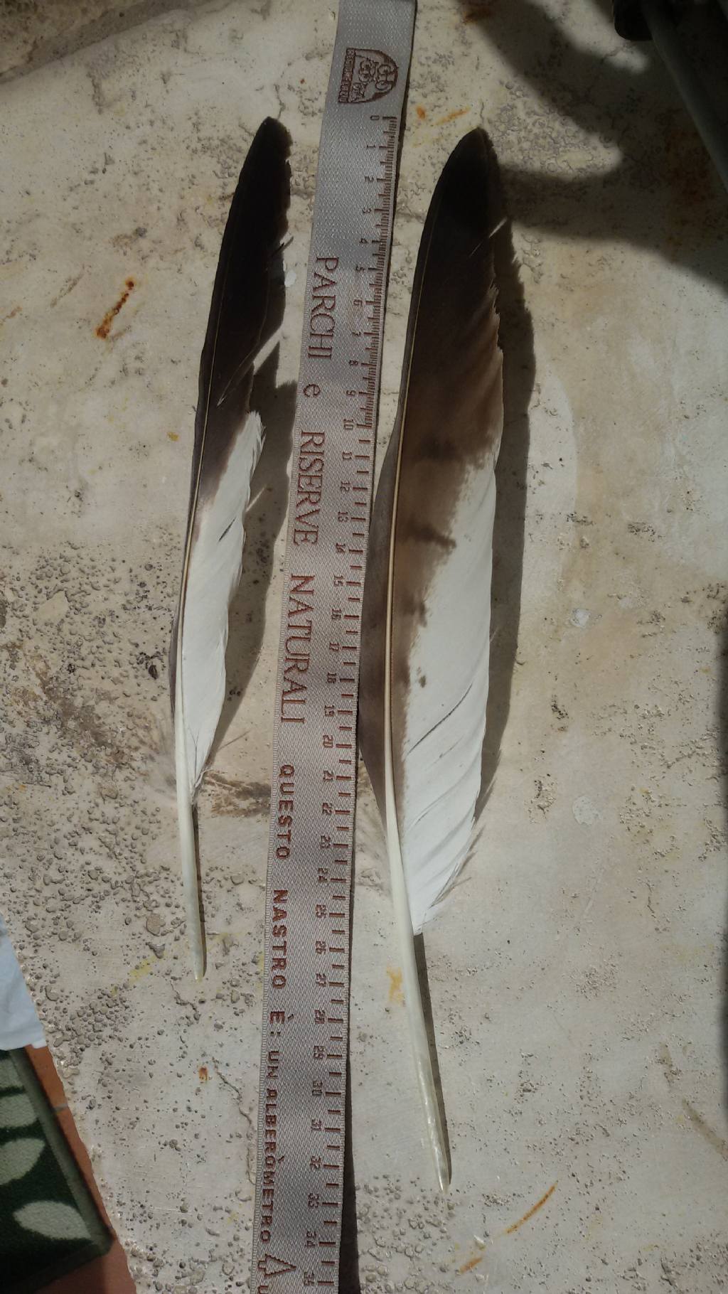 Le penne che seguono le ho raccolte sui Monti Carseolani, in Abruzzo, a 1400 m slm circa. Una è lunga circa 32-33 cm, l'altra 27.