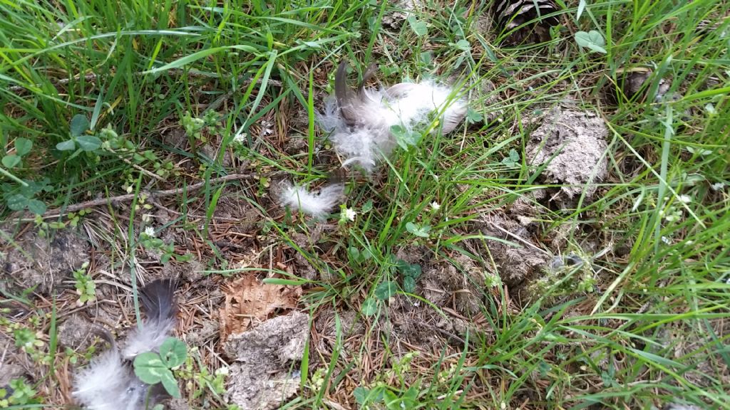 Salve a tutti. Spiumata trovata sotto un abete al limitare di uno spazio aperto nel bosco 700mslm. Su un ramo c'erano parecchie piume. Sapreste indicare chi è la vittima ed il "colpevole"? ( l'ultima foto è di una piuma trovata nello stesso posto credo di sparviere o astore). Grazie mille Immagine: 207 KB
