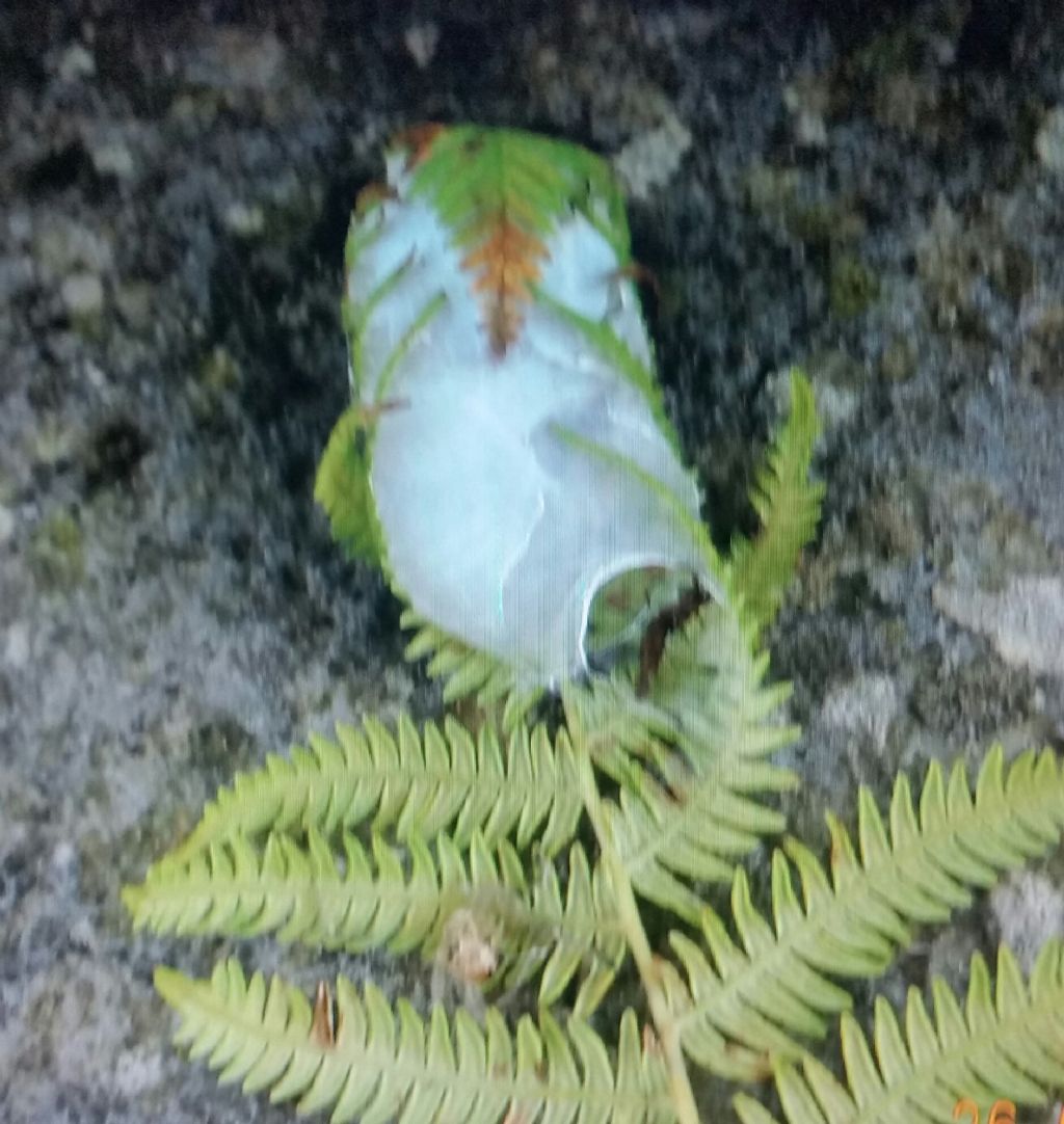 Questa foto l'ho scattata il 07 agosto 2018 nel comune di Roccamonfina (CE), ad una quota di circa 580 m. Fotografata lungo un sentiero di campagna su una felce. È un bozzolo? Di cosa?