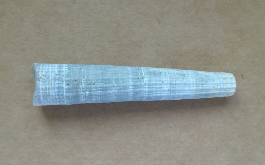Massiccio scafopode, Dentalium rectum Gmelin, si rinviene sporadicamente in depositi pliocenici, difficilmente integro. Esemplare del Piacenziano di Sassuolo (MN). Frammento lungo 73 mm.