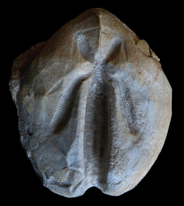 tieni conto che la paleontologia non è esattamente il mo campo, ma l'unica cosa che mi viene in mente è un echinide (spatangoide Link); confronta la forma con questo ad esempio