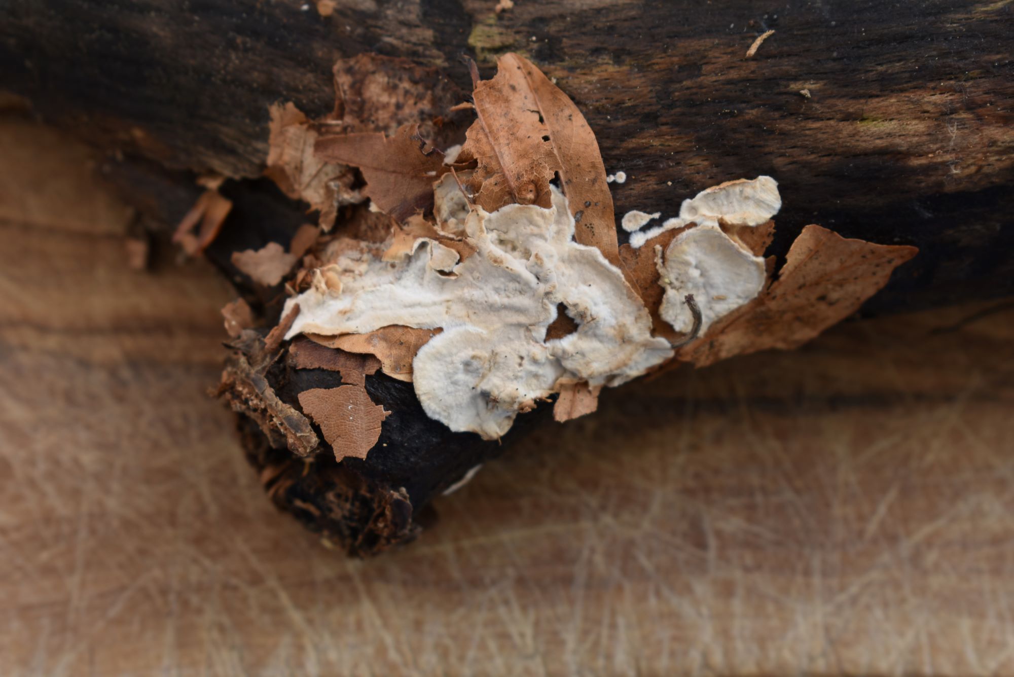 Ho raccolto questo fungo su ramo di faggio a terra presso la foresta di Bagni di Masino (SIC) a circa 1200 mt di quota. Una parte era completamente resupinata, mentre alcuni esemplari sporgevano lateralemente. Superficie sterile marrone vellutata, superficie fertile bianca liscia, ife con numerosi GAF larghe 2,5 3,5 µm, basidi sottili lunghi 25-20 µm, numerosissimi gloecistidi a contenuto fortemente oleoso lunghi fino a 140 µm, spore decisamnete amiloidi Me = 4.4 × 2.8 µm ; Qe = 1.5. Ho pensato a Laxitextum bicolor, può essere? Immagine: