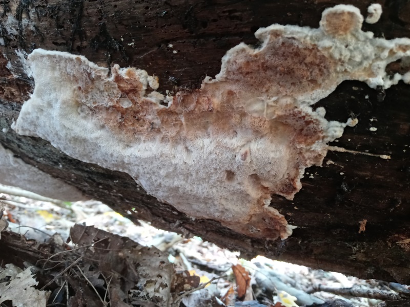 Buongiorno, specie trovata questo mese di ottobre nei boschi dei Roeri (CN). Cresceva sulla faccia inferiore di un tronco di pino silvestre a terra. Due grosse chiazze di dimensione circa 30 x 15 cm. Superficie biancastra con tendenza ad arrossare naturalmente, non per sfregamento, specialmente ai bordi. Basidiomi morbidi, spessi da 7 a 8 mm, di cui 1 solo di contesto. Non ho rilevato rizomorfe. Seguendo le chiavi del libro di Bernicchia, sarei arrivato al genere Antrodia, per le seguenti evidenze: - spore non ornamentate, non amiloidi né destrinoidi, - ife generatrici con GAF, - tubuli e contesto chiaro, - cistidi assenti (boh, io non li ho visti), - dimitico, - poi un po' a tentoni