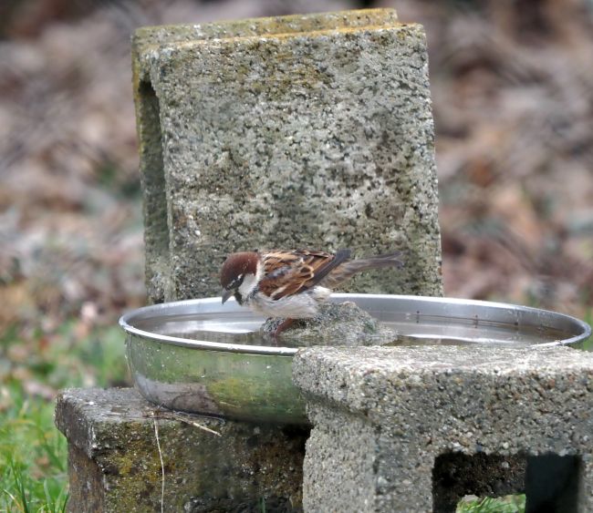 Un mio amico mi ha dato un suggerimento e te lo passo: mettere 2/3 rami d'albero vicino alla vaschetta cosi' quando arrivano e si posano sul ramo la foto è più naturale. Ti posto un esempio e anche se qui la vaschetta si vede poco ma l'effetto cambia.