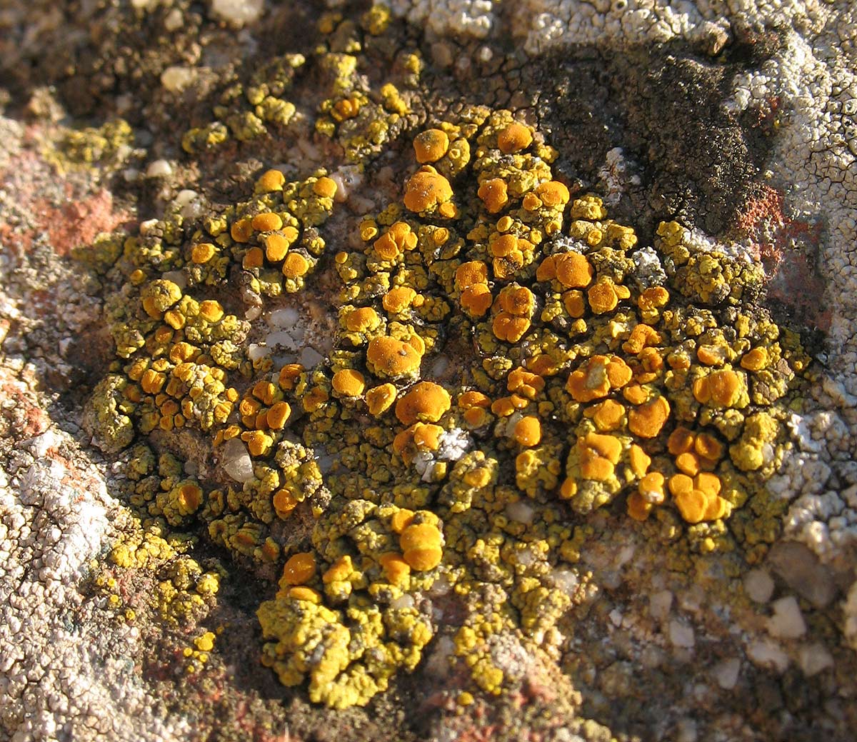 1 Caloplaca sp. (senza le spore è meglio fermarsi al genere, potrebbe essere C. crenulatella, ma anche tutt'altro...). 2 A parte le caloplache (almeno 2 specie diverse) il lichene grigio nel mezzo mui ricorda Trapeliopsis wallrothii, ma non ne sono affatto sicuro, primo perchè di solito cresce su suolo, secondo perchè ovviamente non riesco a vedere la tipica reazione rossa con la varechina diluita. 3 - Tephromela atra ciao PL |