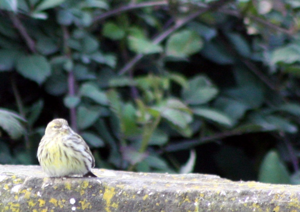 Il verzellino se ne sta tranquillo sul muretto