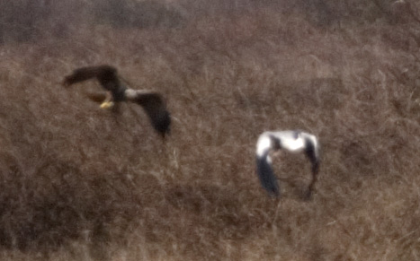 Alcuni cropponi di mobing del falco di palude contro un'airone cenerino. Peccato fossero così lontani!