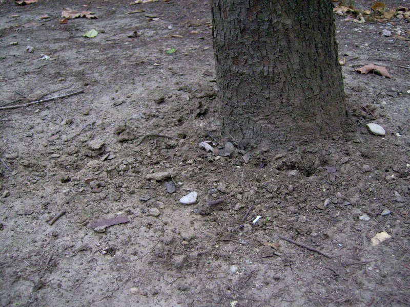 Stamattina ho sorpreso l'autore in pieni lavori sotto un cedro e da quello che ho visto, sembrava non volesse smettere di scavare; solo che in quel momento non avevo con me la macchina fotografica; in un secondo tempo ho fotografato il "cantiere".