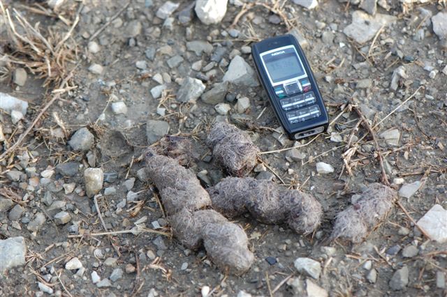 La fatta fotografata è molto secca e disidratata e, come vedi sono rimasti soltanto dei peli, probabilmente di ungulato tipo capriolo, cervo o daino, che rappresentano insieme al cinghiale la maggior risorsa alimentare per il lupo. Tipico degli escrementi di lupo sono appunto i peli indigeriti delle sue prede. Le fatte dei cani domestici sono morfologicamente simili ma senza peli (alcuni presenti possono essere dovuti all' azione di leccarsi). Le fatte dei cani selvatici o rinselvatichiti...sono simili a quelle del lupo! ...in questo caso soltanto l' analisi genetica dell' escremento puo' essere discriminante.. non a caso ho scritto...compatibile! Ciao! Luca |