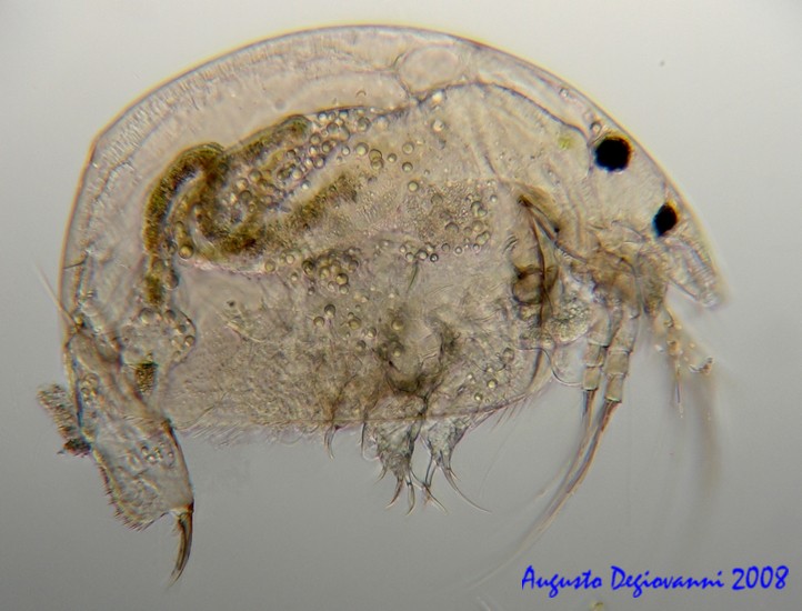 Ciao Maurizio  , ho cercato di vedere se trovavo altri esemplari per fotografarli a diversi ingrandimenti per farvi vedere effettivamente le dimensioni, e ho trovato solamente questo guscio di Ostracode che come dimensione è circa della grandezza della pulce fotografata, le foto sono fatte in fretta senza contrasti e non filtrate, per il mal di schiena che ho e che mi relega a letto purtroppo dopo una serie di 8 punture non accenna a passare.