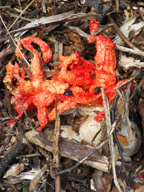 Ciao, probabilmente si tratta proprio di Anthurus archeri molto meno comune di Clathrus ruber, 2 esemplari vetusti e 4 ancora racchiusi nella gleba...