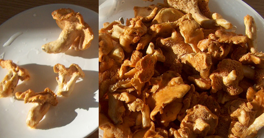 aggiungo solamente che Hydnum rufescens si riconosce oltre che per il colore aranciato dei carpofori, soprattutto per avere gli aculei NON decorrenti sul gambo, come invece in H. repandum, un salutone, Ennio.