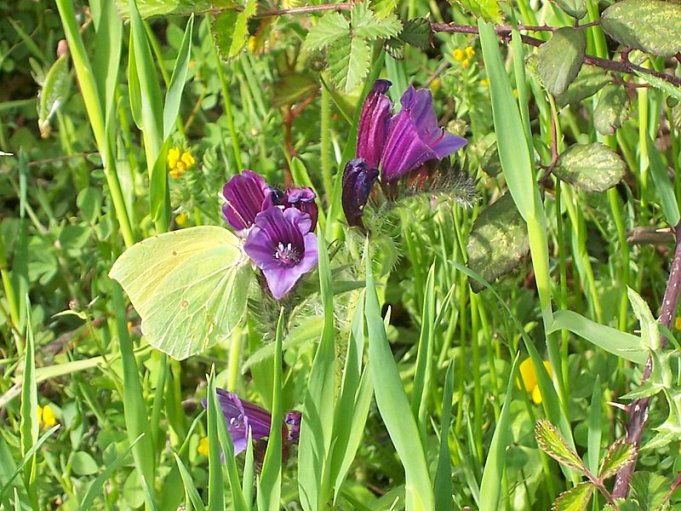 Echium sicuro, sembrerebbe il vulgare, ma non valgo molto come botanico la farfalla dovrebbe essere una cedronella maschio (Gonepteryx rhamni) Carlo |
