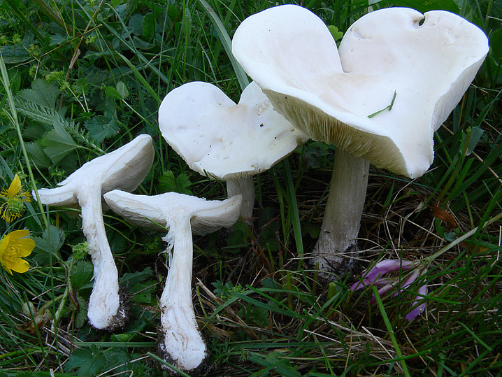 | Due le Melanoleuca, entrambe raccolte in pascolo. Una, di dimensioni medio-grandi, e di colore bianco è stata determinata come M. strictipes, mentre l' altra, di dimensioni inferiori è stata determinata come M. substrictipes.