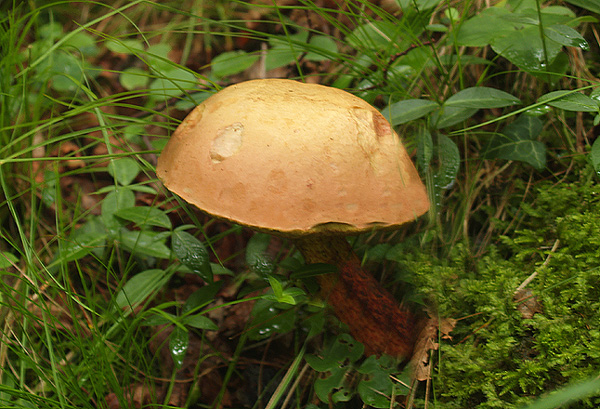 Ciao, sarebbe utile sapere se attorno c'erano abeti o pioppi. A "naso" direi Leccinum piceinum, vista anche la presenza di mirtillo nero nel sottobosco, ma aspettiamo di vedere cosa ci dici sugli alberi presenti oltre al faggio. |