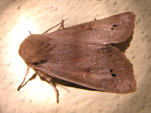 Bravo Salvatore! la determinazione è esatta solo a livello di famiglia , ma bravo lo stesso perché c'hai provato, innanzi tutto, e perché hai anche trovato un carattere (le due macchiette nere) su cui basare la determinazione. Peccato però che la Amphipyra tragopoginis ha le due macchiette (quando le ha) più spostate verso il centro dell'ala, come si vede in questa foto di Raniero Panfili
