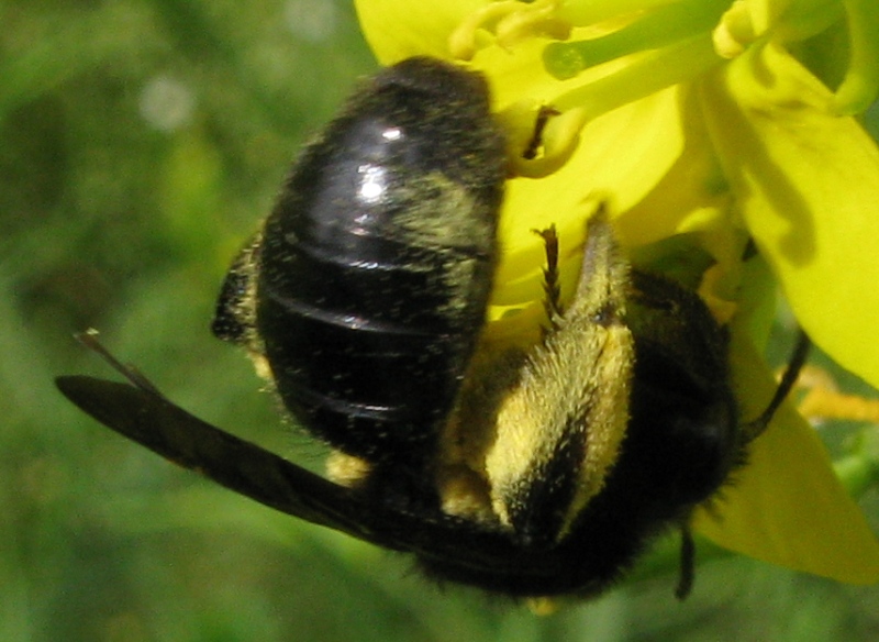 Stamattina a Soccavo di Napoli, c'erano tante di queste bellissime "pantere nere" ! Potrebbe essere un tenthredine ? continuo a pensare ad un apoideo per la incredibile quantità di polline raccolto.!.. L'insetto non si lasciava avvicinare (domani riprovo..) era qualche mm più lungo di un'ape domestica, e velocissimo