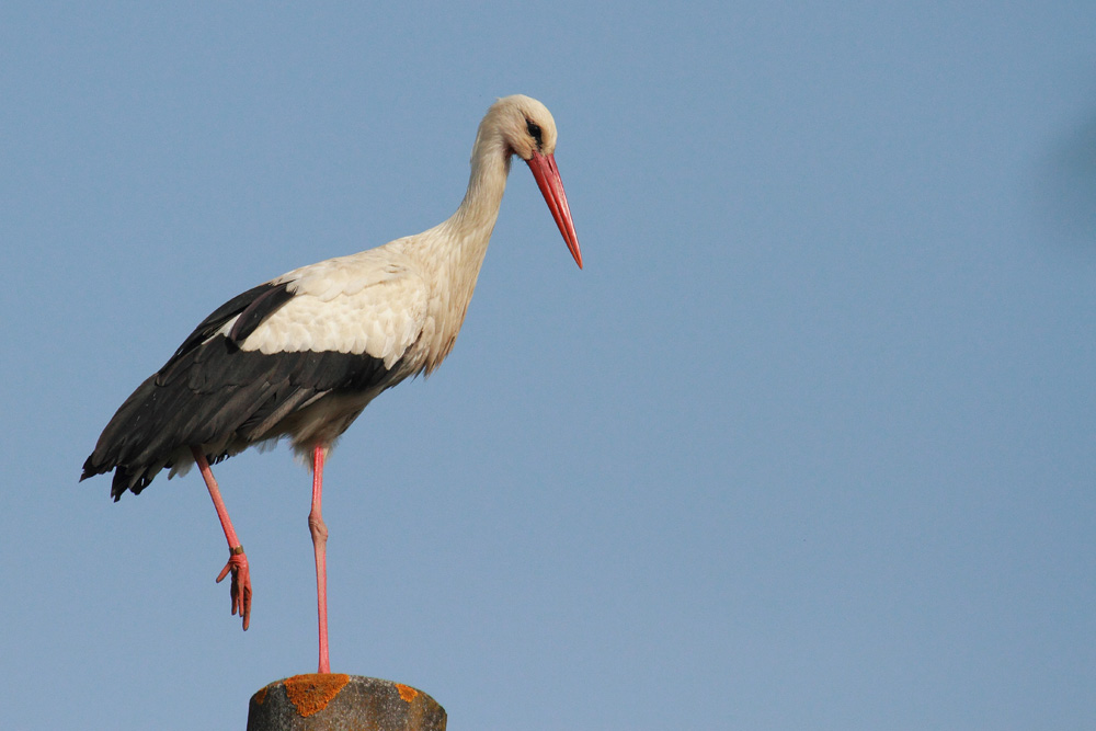 Aggiungo, dello stesso esemplare, una foto mentre spicca il volo dal nido ed una in atteggiamento bill-clattering con il/la partner.