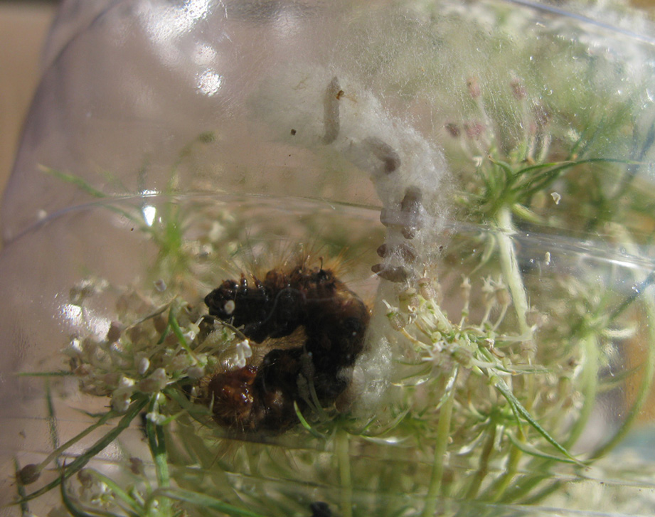 Qualche settimana fà ho postato questo bruco che mi è stato identificato come acronicta rumcis ho provato ad allevarlo col metodo (MAZZEIP) gia sperimentto con successoco altr bruco MACAONE PAPILIO. dopo qualche giorno il bruco sembra morto e al posto della crisalide ho troavato un bozzolo con delle piccole larve dentro ora Immagine: 244,47 KB sono in attesa di nuove evoluzioni