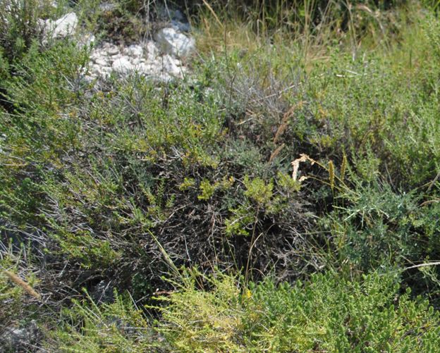 Trovato sulle rocce calcaree del Gargano. Presenta punte disseccate dell'anno precedente. Immagine: