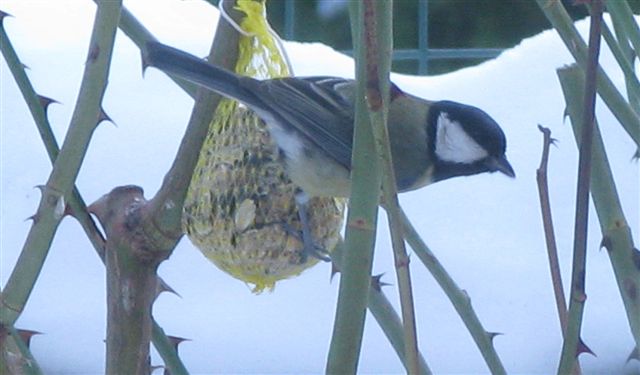 Ciao a tutti, scusate la qualità delle foto. Da me la neve è ancora abbondante e copre tutto. Ho visto che le pallette di semi con grasso sono molto amate da questi uccellini, in pochi giorni ne hanno mangiato parecchie.Oggi , finalmente ne ho fotografato uno ..eccolo:
