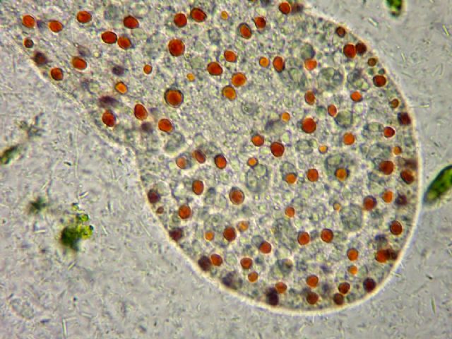 Aeolosoma-hemprichi "pescato" in una coltura sovrabbondante di spirilli. L'nimaletto era in fase riproduttiva.