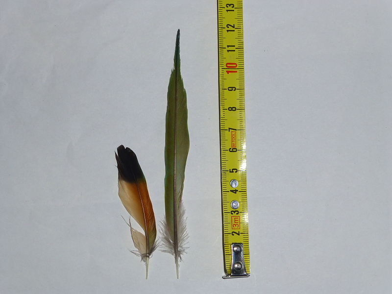 ho pensato anch'io al gruccione,però non mi convinceva del tutto il luogo,poco adatto alla specie,si trovava in mezzo alla pineta,forse lo sparviere(?)ha predato e spiumato in luoghi differenti,potrebbe esserci nei paraggi qualche canale che non ho visto...