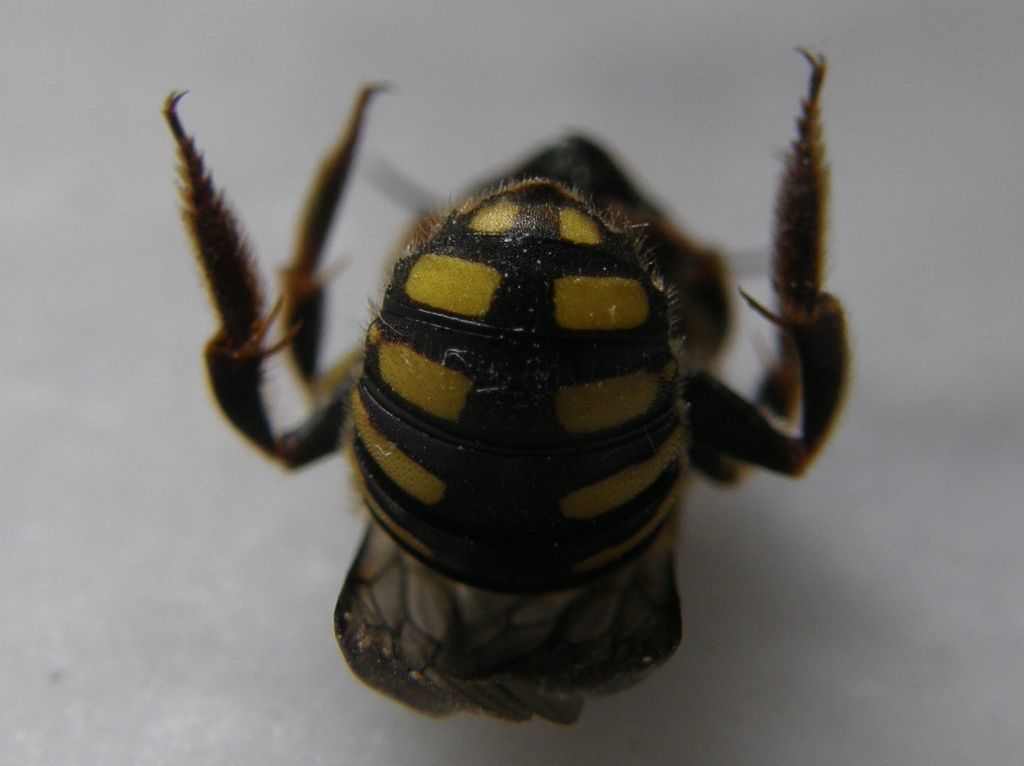 Tranquillo, i genitali non servono, tanto più perché si tratta di una femmina. Si tratta di una femmina di Anthidium florentinum. |