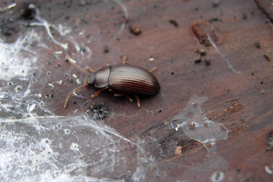 1) RN delle Casse di Espansione del Secchia tra RE e MO, 10-02-07: esplorando sotto i tronchi marcescenti a terra, tra il fogliame secco, molti di questi coleotteri scappavano da tutte le parti: sono riuscito a fotografare relativamente bene uno solo, dopo averlo rinchiuso in un contenitore; il più grosso era sul 1,5-2 cm: provo a identificarlo, ma con i coleotteri ci capisco veramente poco: Carabide? Carabus arvensis?